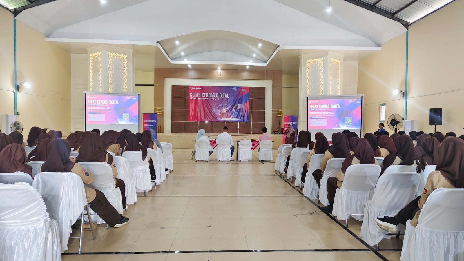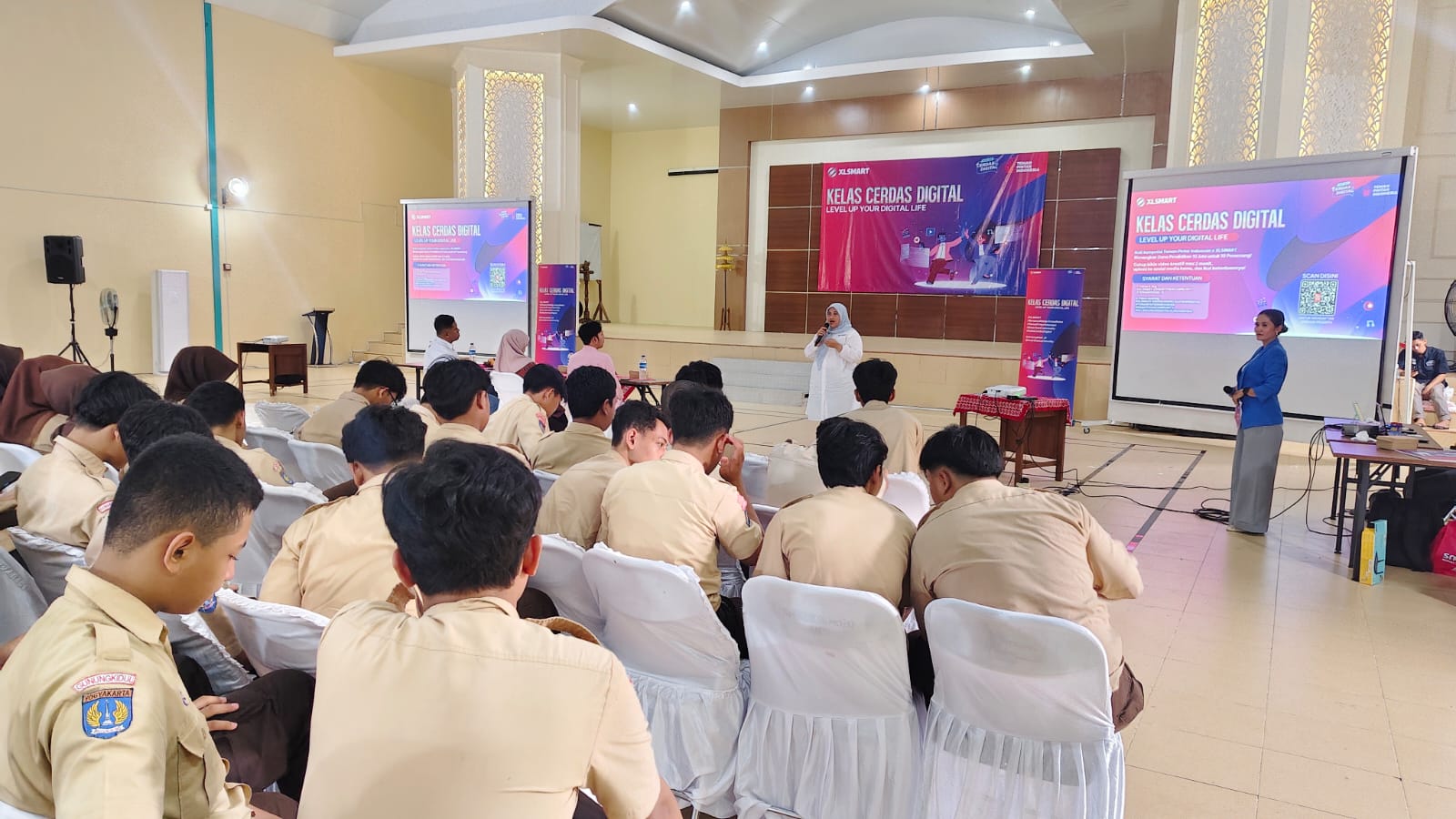 Para siswa tampak serius namun santai mengikuti jalannya presentasi dari tim XL Smart. Dengan tagline "Level Up Your Digital Life", materi yang disampaikan mencakup tips konten kreatif, keamanan siber, hingga cara memaksimalkan perangkat digital untuk prestasi akademik.