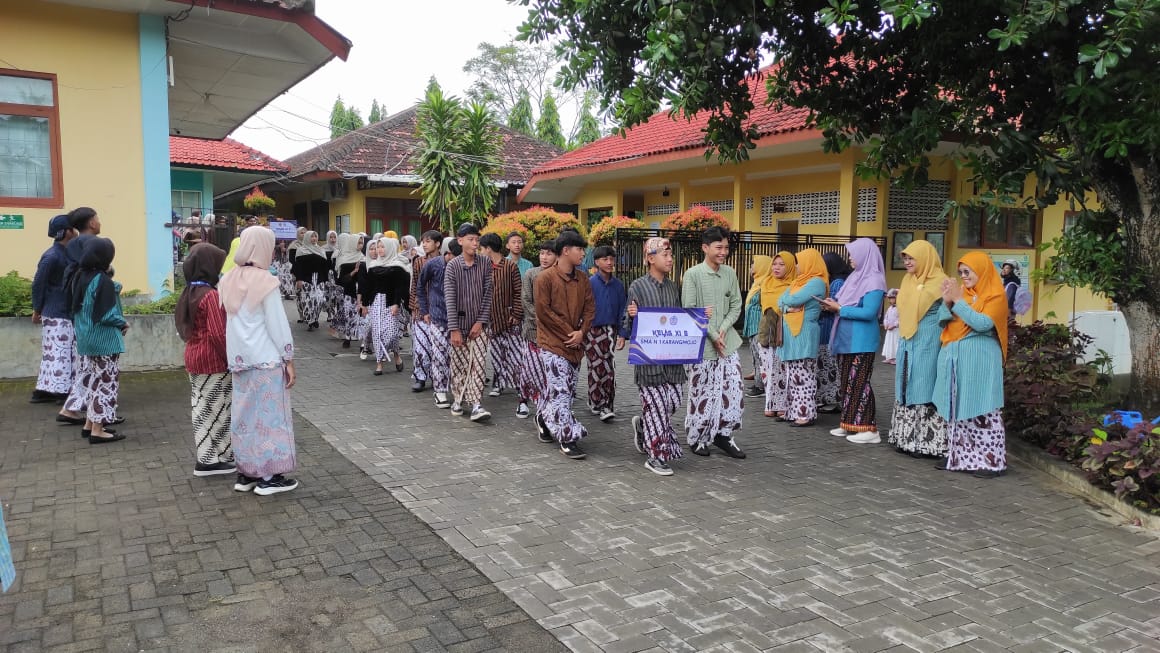Kepala Sekolah beserta jajaran struktural turut berada di barisan terdepan, memberikan teladan semangat nasionalisme dan budaya kepada seluruh siswa. Kegiatan ini ditutup dengan ramah tamah di lingkungan sekolah, meninggalkan kesan mendalam tentang pentingnya menjaga persatuan dalam bingkai budaya.