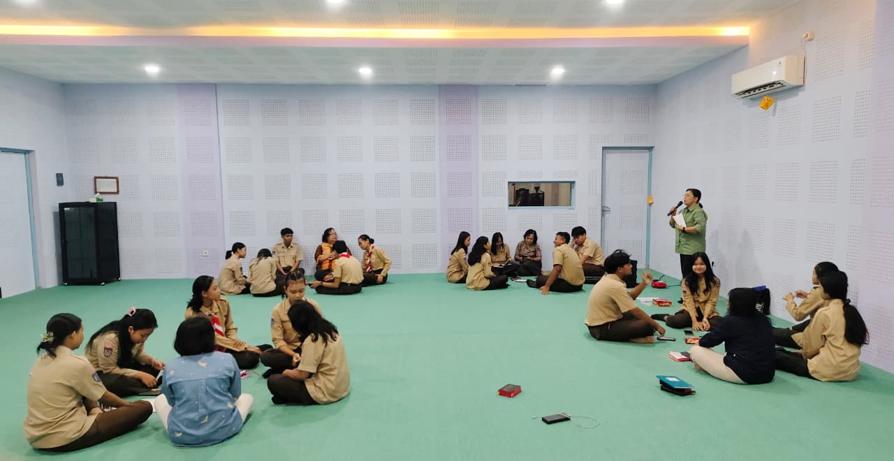 3. Katholik: Pendalaman kitab suci dipandu Ibu Iswardani Tri Harjanti S.Pd., M.Pd di Ruang Seni Budaya.