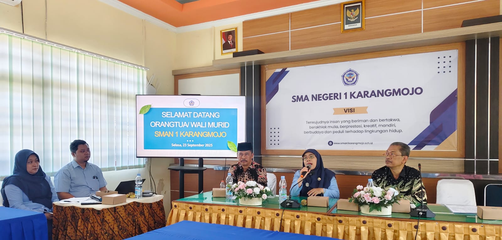 SMAN 1 Karangmojo mengadakan kegiatan Sosialisasi Program Sekolah Tahun Pelajaran 2025/2026 dengan mengundang orangtua/wali murid kelas XII di ruang Ava pada hari Selasa 23 September 2025.
